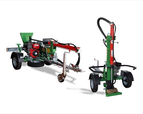 Hydraulic log splitters, saw benches, conveyor belts, tandems, combined machines, portable winches