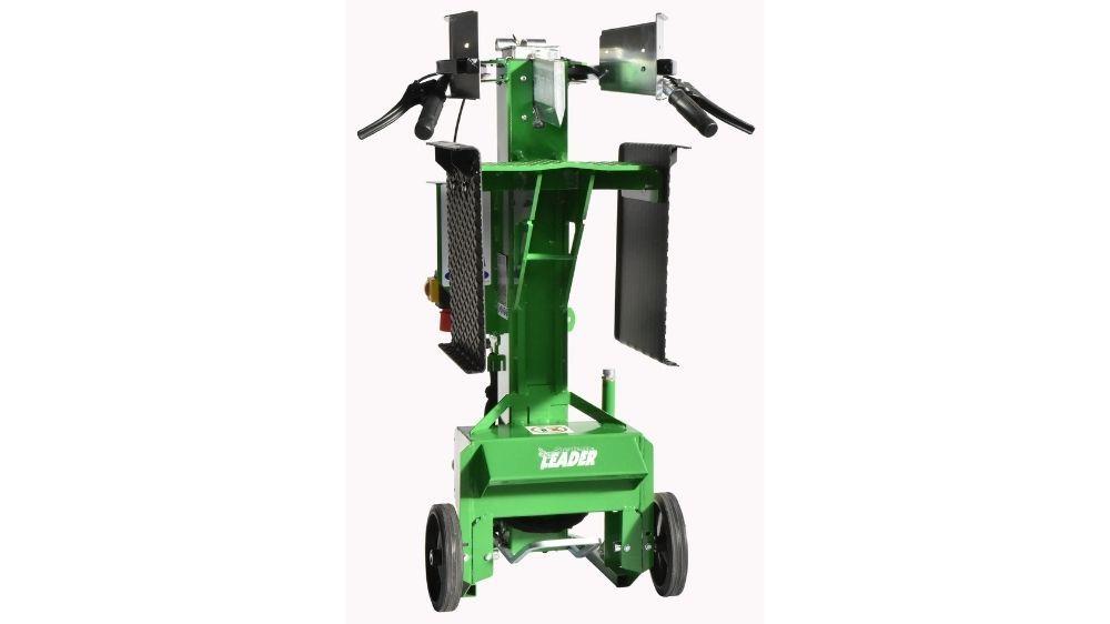 Hydraulic log splitter with vertical working position. With exclusive centering control by pedal