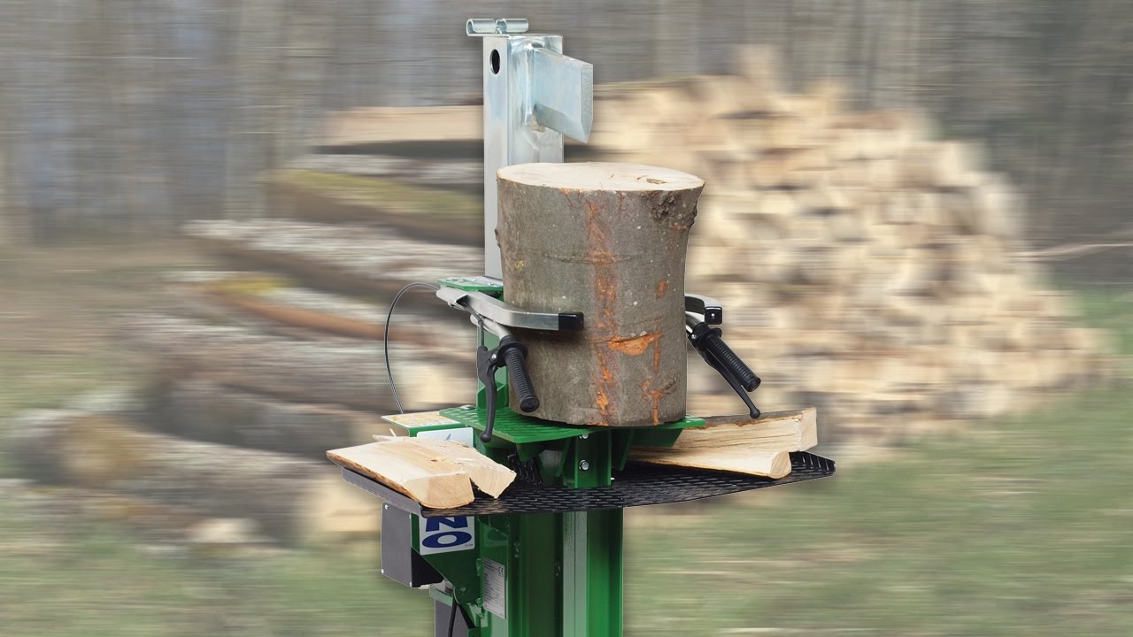 Hydraulic log splitter with vertical working position. With exclusive centering control by pedal.