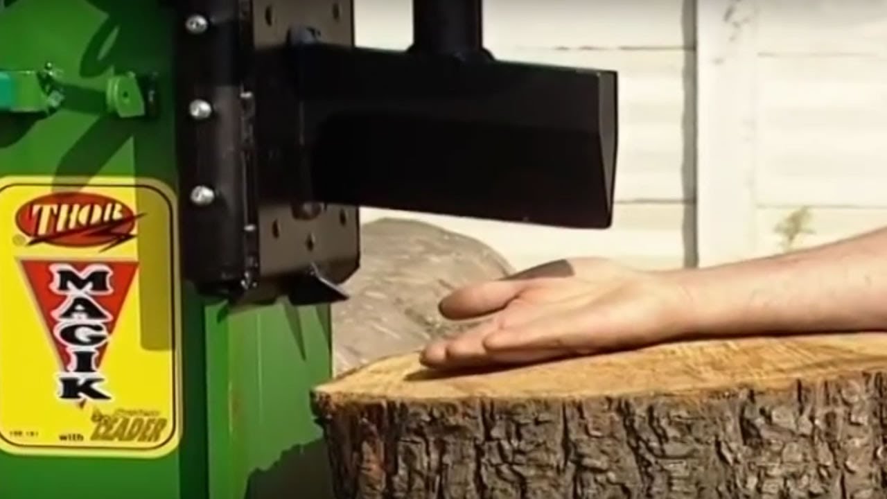 Once the log is centered and blocked in the desired position the two control levers are used to split the log.