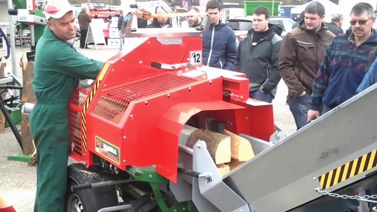 It can be used as a combined cutting and splitting machine and is equipped with a vibrating extension or conveyor belt as optionals for the lifting operations of splitted logs up to a height of 2.10 m (retractable after use). |